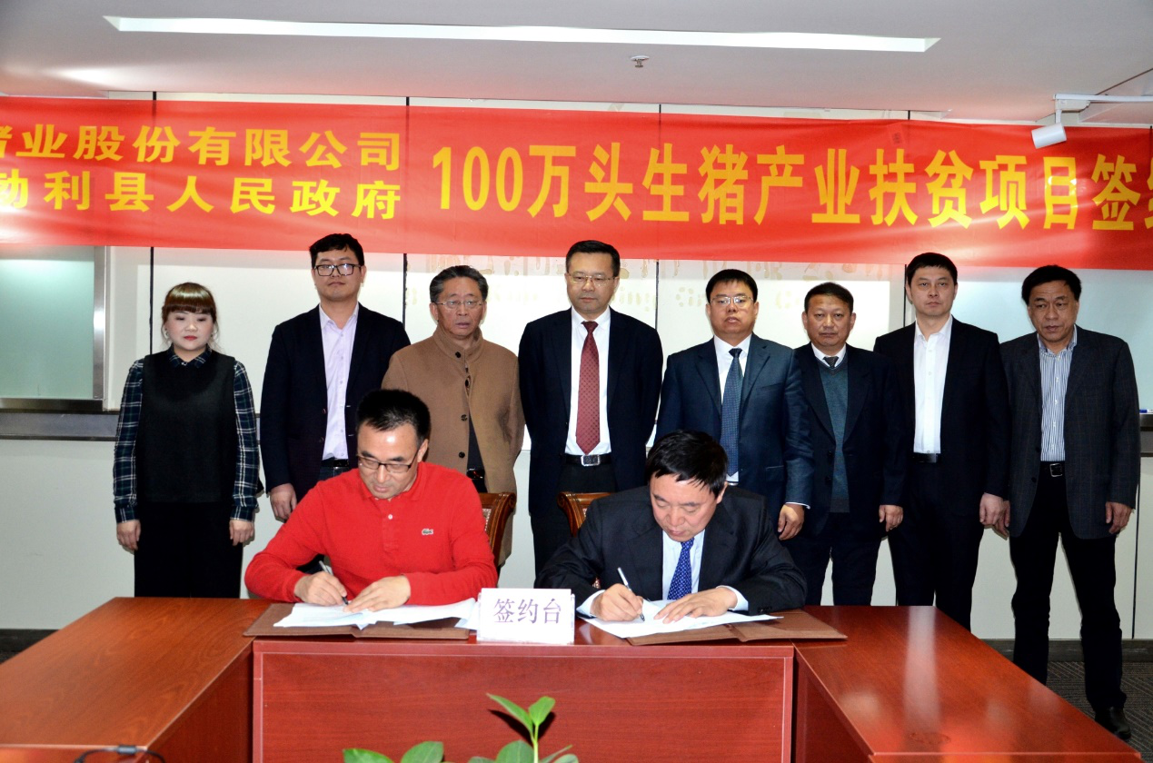 近日,黑龍江省勃利縣常務副縣長田樹盛先生和天兆豬業董事長余平先生在天兆豬業重慶總部簽訂了《勃利縣100萬頭生豬產業扶貧項目招商引資協議》。